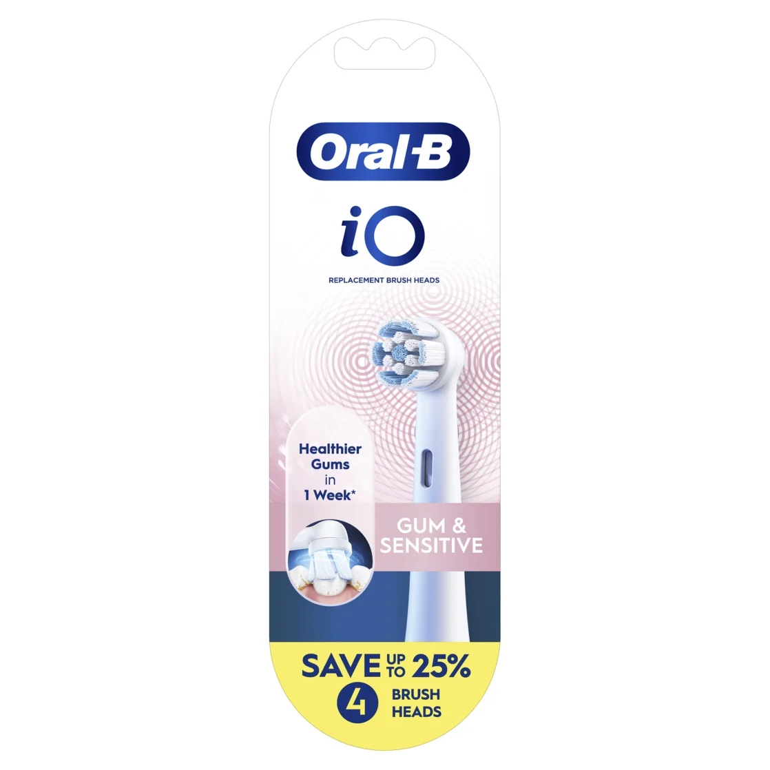 Oral-B iO Gum & Sensitive Replacement Heads, Electric Toothbrush Brush Heads, White, 4 Count