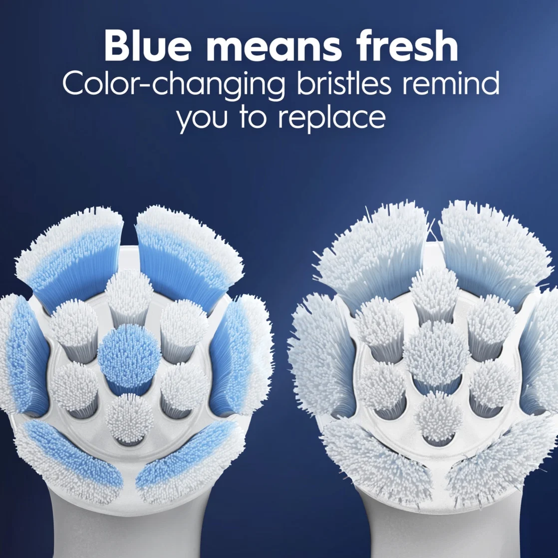 • Always know when to change your brush head to go back to 100% cleaning power. Smart Bristles fade to white when their cleaning power fades.