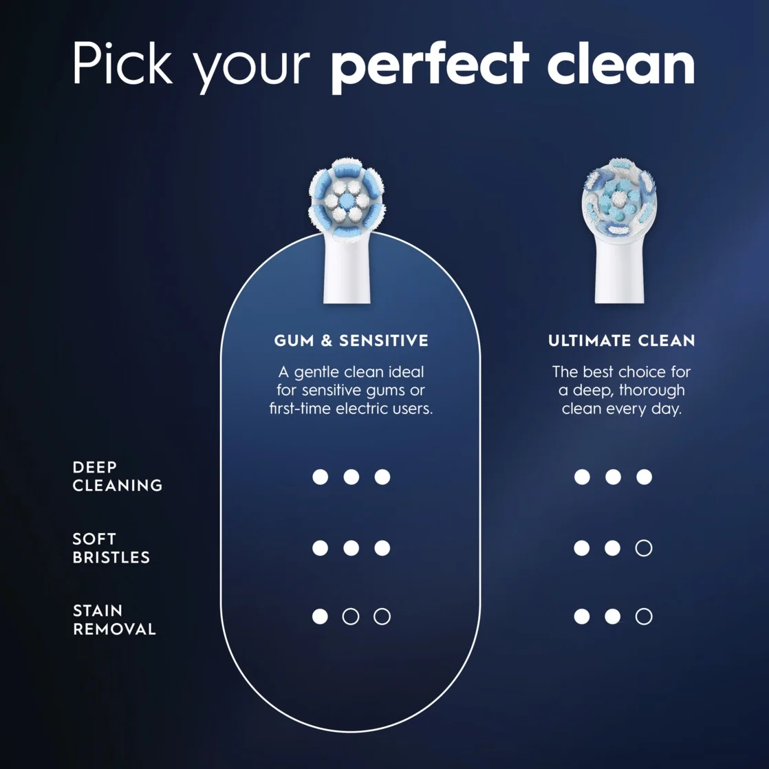 • Oral-B’s signature round brush head with thousands of bristles adapts to your unique tooth shape for maximized cleaning efficacy.